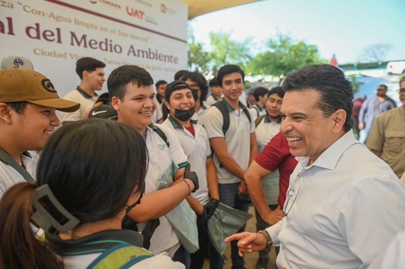 CIUDAD VICTORIA, TAMPS. En el marco del ‘Día Mundial del Medio Ambiente’, el presidente municipal de Victoria, la Capital de Tamaulipas, Eduardo Gattás Báez, encabezó la jornada de saneamiento del emblemático río San Marcos con la participación de un contingente de más de 400 servidores públicos.