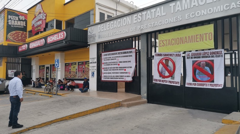 CIUDAD VICTORIA, TAMPS. Esta mañana, el Frente Estatal de la Defensa de la Seguridad Social en el Estado de Tamaulipas tomó la Subdelegación de Prestaciones Económicas del ISSSTE y exigió la destitución del subdelegado Tomás Sánchez Lara y del jefe de la Unidad Jurídica Eduardo López González.