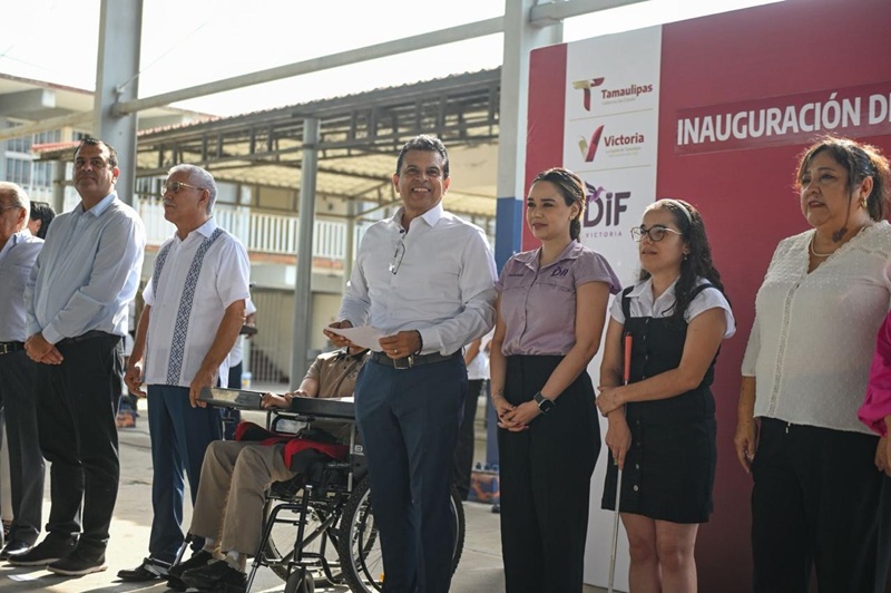 CIUDAD VICTORIA, TAMPS. En apoyo a la educación inclusiva, el presidente municipal de Victoria Eduardo Gattás Báez y la presidenta del DIF Lucy de Gattás, inauguraron 11 rampas para personas con capacidades diferentes en la escuela Secundaria General N° 4 Profr. José Santos Valdés Salazar.