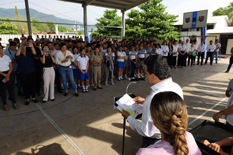El mensaje de agradecimiento a la autoridad y Cabildo Municipal estuvo a cargo del alumno Esteban de Jesús Rosete Uvalle, quién, al igual que el director del plantel Prof. Ernesto Carrizales, reconoció el apoyo a la educación con la entrega de obras de beneficio colectivo.