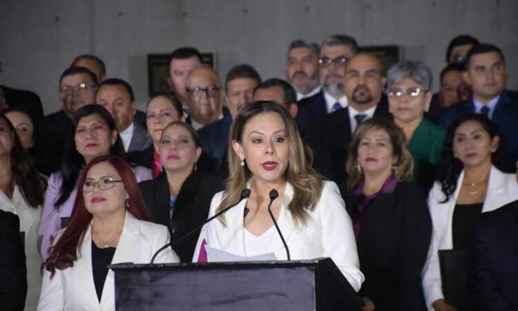 Posteriormente, Contreras López dio un mensaje, acompañada del resto de los nuevos integrantes del Poder Judicial del Estado.