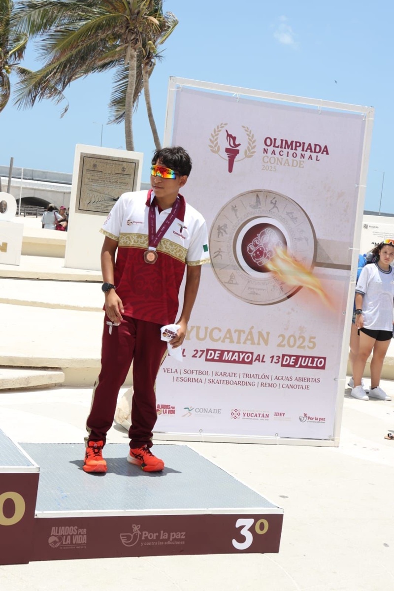 Además, el atleta Eduardo Zurita Hernández sumó una medalla de bronce en la categoría 12-13 años, y así cerró una destacada actuación para el estado en este primer día competitivo.