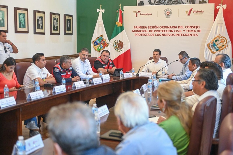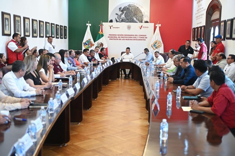 CIUDAD VICTORIA, TAMPS. Como presidente del Consejo Municipal de Protección Civil, el alcalde de Victoria Eduardo Gattás Báez, tomó protesta a nuevos integrantes para el período 2024 – 2027, en el marco de la primera sesión ordinaria realizada en la Sala de Cabildo.