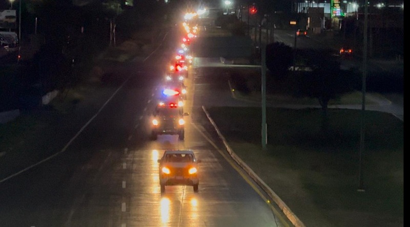 NUEVO LAREDO, TAMPS. Con el propósito de preservar la integridad de las personas que componen la Caravana “Migrantes Unidos” durante su tránsito por territorio tamaulipeco, personal de la Guardia Estatal de Apoyo Carretero comisionado a la Estación Segura Puente III acompañó al contingente durante su paso por la Carretera Federal 85 Nuevo Laredo-Monterrey.