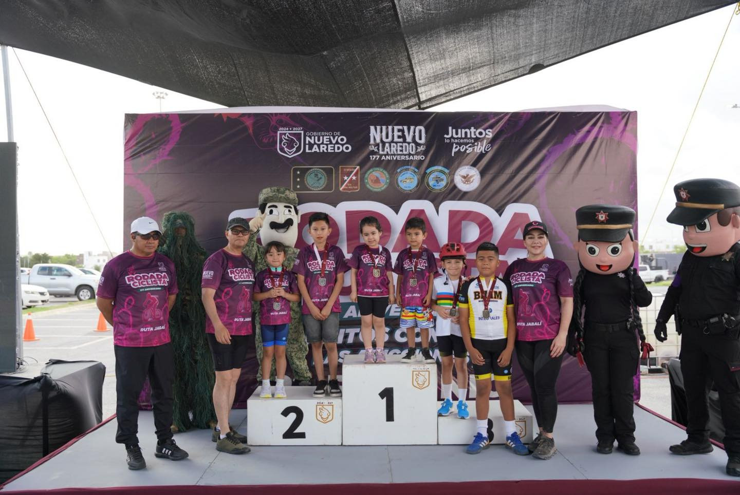 NUEVO LAREDO, TAMPS. Cientos de ciudadanos, junto a la alcaldesa Carmen Lilia Canturosas; el general de Brigada Diplomado de Estado Mayor, Fernando Colchado Gómez, comandante de la Octava Zona Militar y el Comandante General Brigadier Diplomado Estado Mayor Rolando Solano Rivera, comandante de la Guarnición Militar de Nuevo Laredo, encabezaron una colorida rodada ciclista para celebrar de manera activa el 177 aniversario de la ciudad.