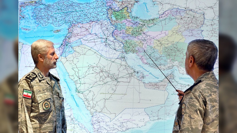 El comandante en jefe del Ejército iraní, Amir Hatami, atiende a un asesor sobre la crisis bélica en Oriente Medio y en la región del Golfo Pérsico. FOTO