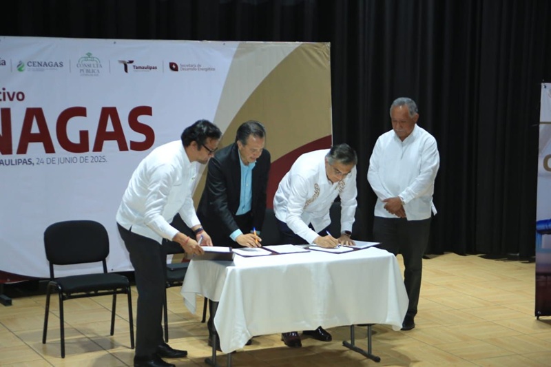 Durante el evento, celebrado en el auditorio de la CMIC de esta ciudad, el gobernador firmó como testigo de honor el convenio de colaboración entre el Gobierno de Tamaulipas y CENAGAS, que establece las bases de colaboración para desarrollar proyectos conjuntos de investigación, desarrollo tecnológico y formación de capital humano en materia de gas natural.