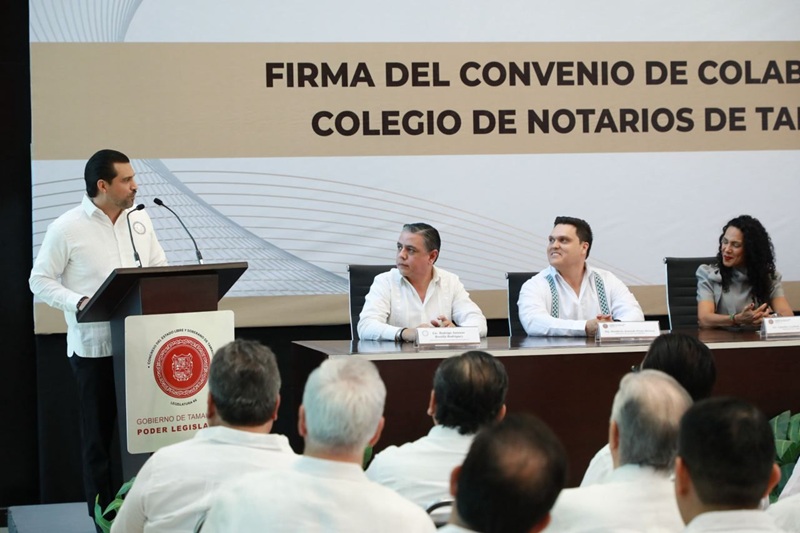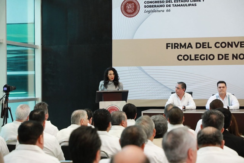 CIUDAD VICTORIA, TAMPS. Con el objetivo de establecer mecanismos de cooperación institucional y fortalecer la cultura de la legalidad en beneficio de la ciudadanía tamaulipeca, el Congreso local y el Colegio de Notarios de Tamaulipas A.C. firmaron este lunes un Convenio de Colaboración, en las instalaciones del Poder Legislativo.