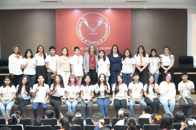 CIUDAD VICTORIA, TAMPS. La Universidad Autónoma de Tamaulipas, a través de Familia UAT y el Centro de Idiomas para la Niñez y la Adolescencia (CeINA), celebraron la entrega de medallas de primer lugar y distinciones de excelencia en reconocimiento al esfuerzo y dedicación de sus estudiantes del periodo Primavera 2025-1.
