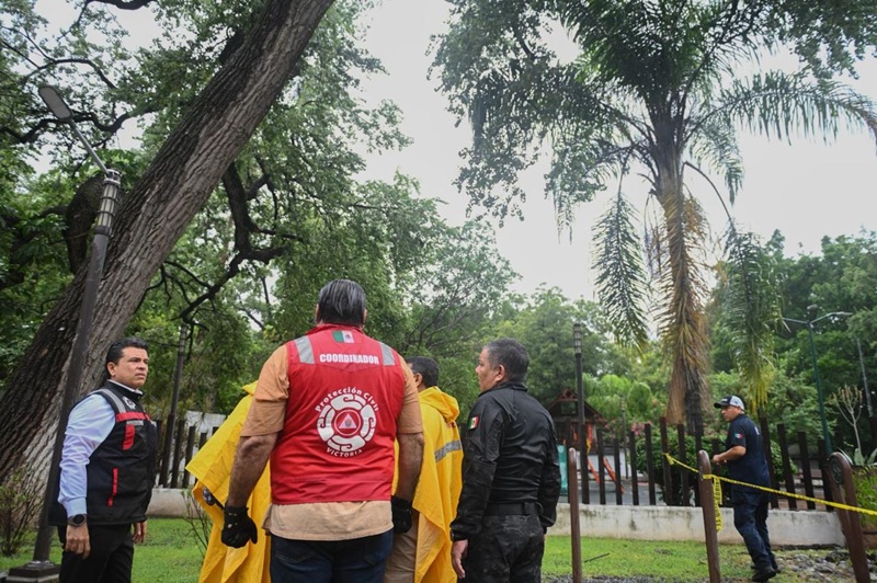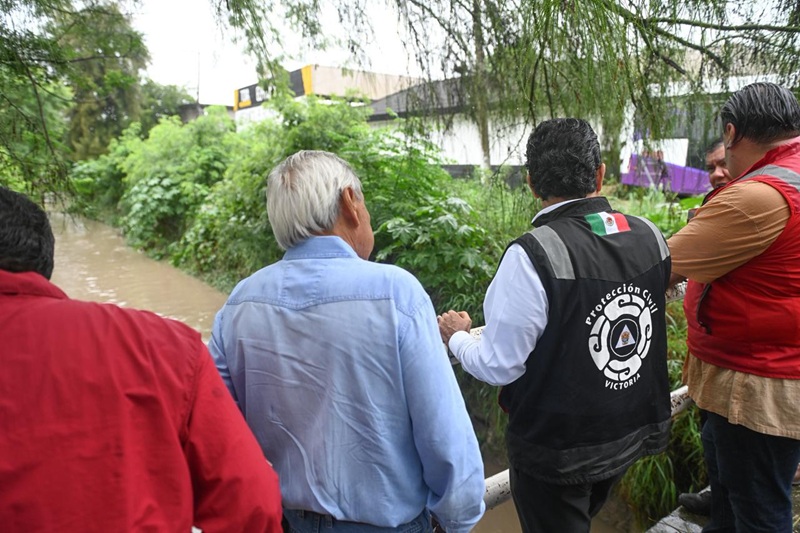 El recorrido de supervisión inició en la plaza del Paseo Méndez, donde se registró la caída de un árbol por exceso de humedad, continuó en las colonias Banrural y Adelitas colindantes con el dren pluvial, calle Zacatecas del 17 al 19, una vivienda en el Fracc. Villarreal que sufrió la caída de una barda y canal de desfogue en el Ej. Guadalupe Victoria.