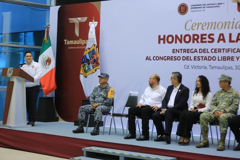 En la ceremonia cívica también participaron: Héctor Joel Villegas González, secretario general de Gobierno; la diputada Cynthia Jaime Castillo, presidenta de la Mesa Directiva del Congreso del Estado; el magistrado Hernán de la Garza Tamez, presidente del Supremo Tribunal de Justicia; el general Enrique García Jaramillo, comandante de la 48 Zona Militar, y el coronel Daniel Hugo Salinas, en representación de la Coordinación Estatal de la Guardia Nacional, además del personal del Congreso, integrantes del gabinete estatal y de la Mesa de Coordinación para la Construcción de Paz .