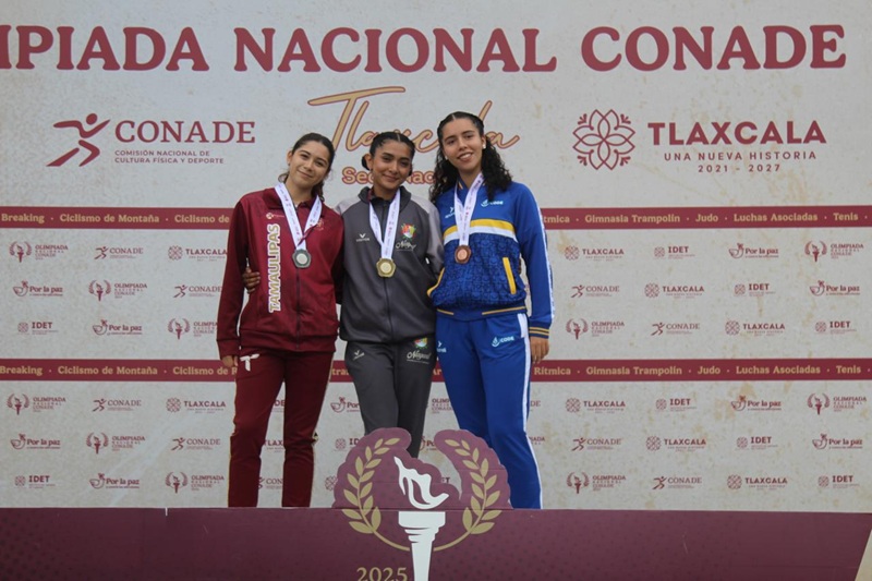APIZACO, TLAXCALA. La delegación tamaulipeca de atletismo continúa cosechando éxitos en la Olimpiada Nacional 2025 al sumar tres nuevas medallas: una de oro, una de plata y una de bronce, durante el segundo día de competencias en las categorías Sub-20 y Sub-23, celebradas en el estadio de atletismo de la ciudad de Apizaco, Tlaxcala.