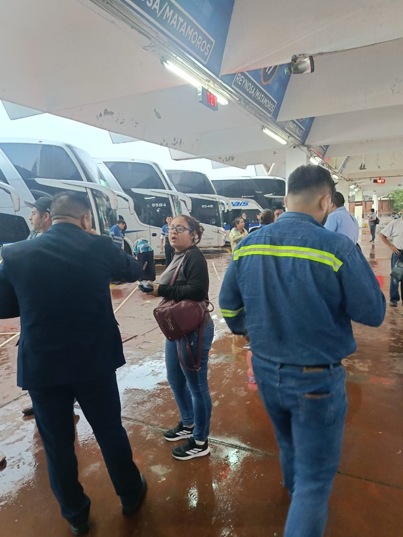 Desde las 2:00 de la mañana, los pasajeros de al menos 15 unidades de líneas como Transpais, Senda y Frontera, quedaron sin poder salir de la capital tamaulipeca, a la espera de que baje el nivel del agua para reanudar su trayecto.