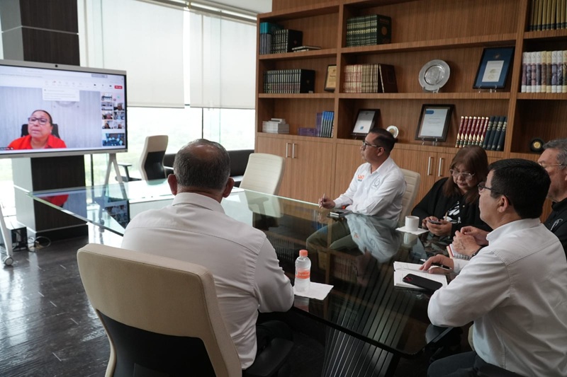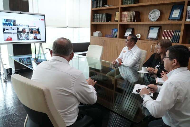 CIUDAD VICTORIA, TAMPS. El rector de la Universidad Autónoma de Tamaulipas (UAT), Dámaso Anaya Alvarado, sostuvo una reunión virtual con directores y directoras de las dependencias académicas de los campus Sur, Mante y Victoria, a fin de evaluar las medidas que se han implementado para proteger la integridad de la comunidad universitaria durante la contingencia meteorológica que se ha presentado en la región.
