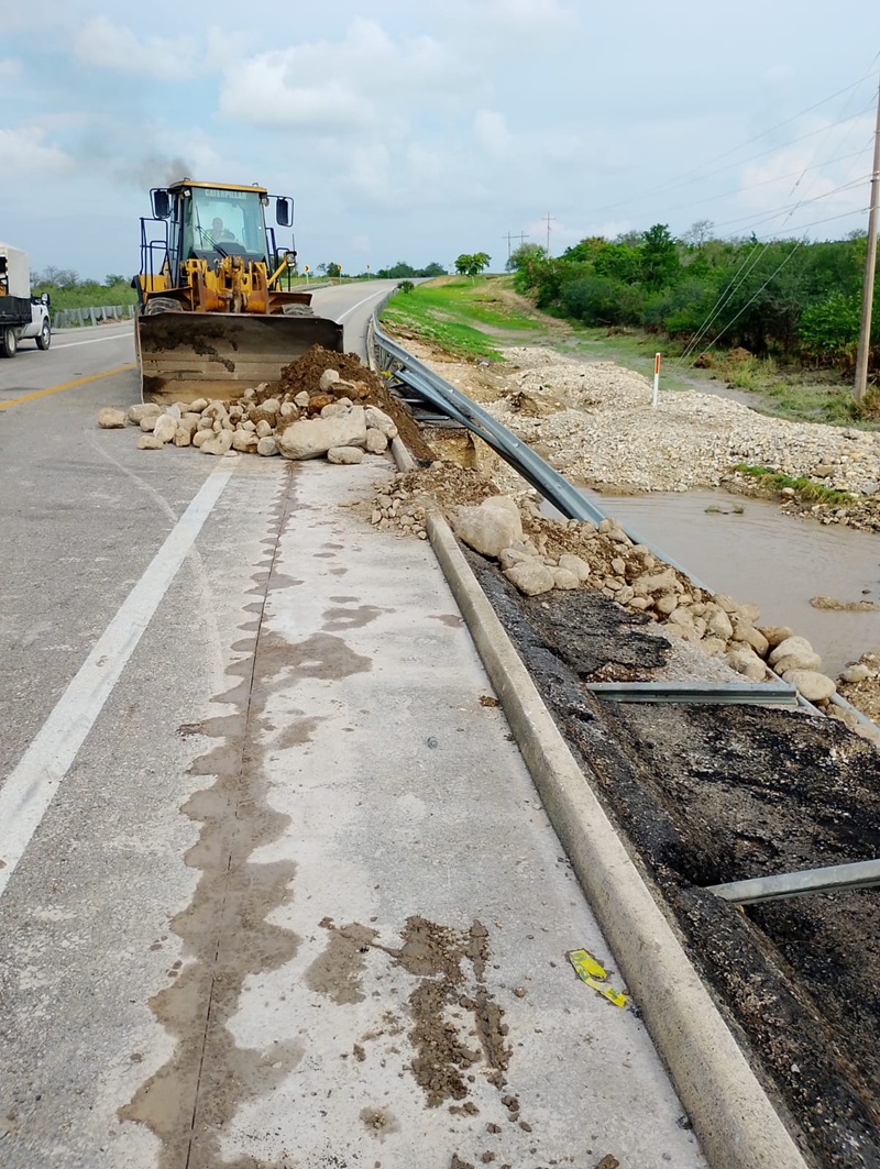 CIUDAD MADERO, TAMPS. Apenas se reportaron los daños en los tramos carreteros a causa de las lluvias, la Secretaría de Obras Públicas del Estado en coordinación con la Secretaría de Infraestructura, Comunicaciones y Transportes del Gobierno Federal inició de inmediato los trabajos y movilizó maquinaria pesada, personal y materiales para reparar las afectaciones.