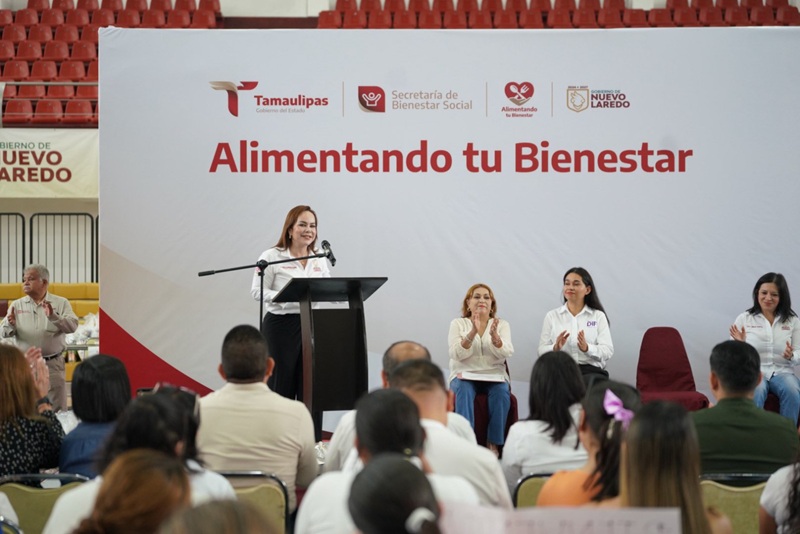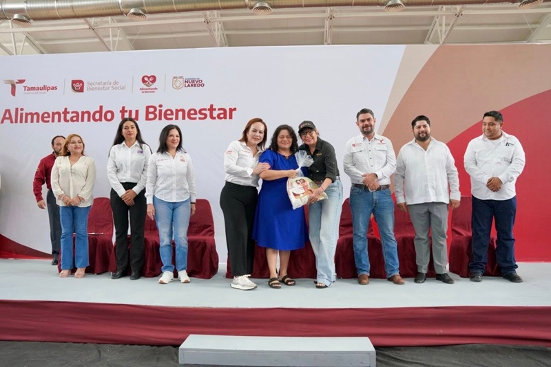 NUEVO LAREDO, TAMPS. En un acto que reafirma el compromiso de transformar realidades y combatir el rezago alimentario, el Gobierno de Tamaulipas, a través de la secretaria de Bienestar Social de Tamaulipas Silvia Lucero Casas González, acompañada de la presidenta municipal de Nuevo Laredo, Carmen Lilia Canturosas Villarreal entregó los apoyos del programa “Alimentando tu Bienestar”, iniciativa estatal que busca garantizar el acceso a productos de la canasta básica a personas en condición de pobreza.