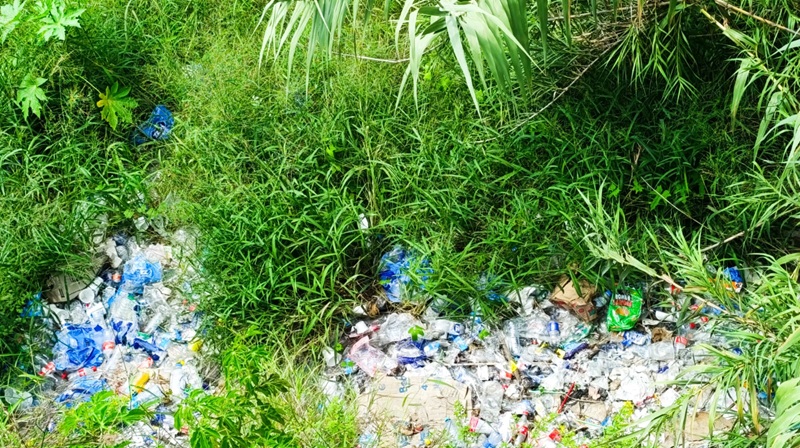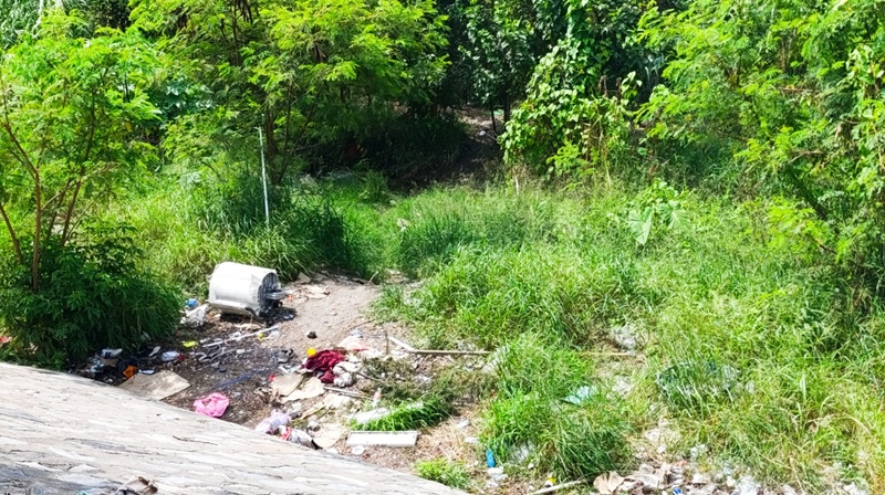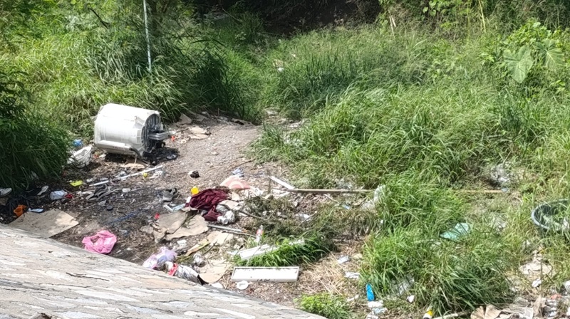 A lo largo de su tramo urbano, el afluente muestra escenas alarmantes: bolsas de plástico colgadas entre las ramas, botellas flotando entre la corriente, muebles viejos a medio enterrar en la ribera y escombros esparcidos sin control.