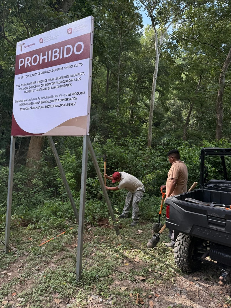 CIUDAD VICTORIA, TAMPS. Como parte de una estrategia integral para preservar los ecosistemas del estado, la Procuraduría Ambiental y Urbana de Tamaulipas (PAUT), en coordinación con la Secretaría de Desarrollo Urbano y Medio Ambiente (SEDUMA), instaló señalamientos de restricción en diversos accesos del Área Natural Protegida (ANP) Altas Cumbres y el parque ecológico Los Troncones.