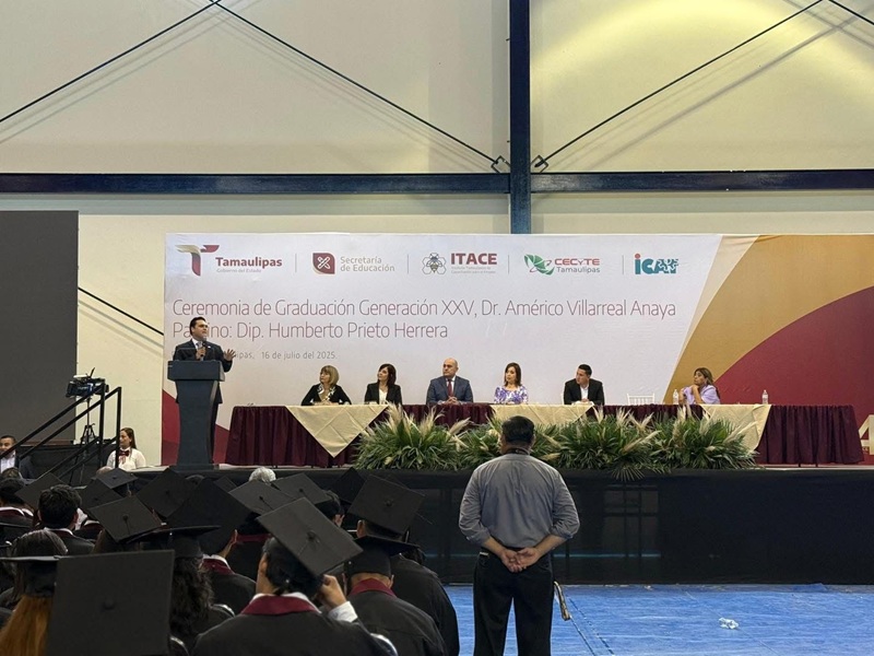 El presidente de la Junta de Gobierno felicitó a los egresados del Instituto Tamaulipeco de Capacitación para el Empleo, así como a los familiares y maestros que forman parte del esfuerzo de los estudiantes en la culminación de su preparación de nivel medio superior.