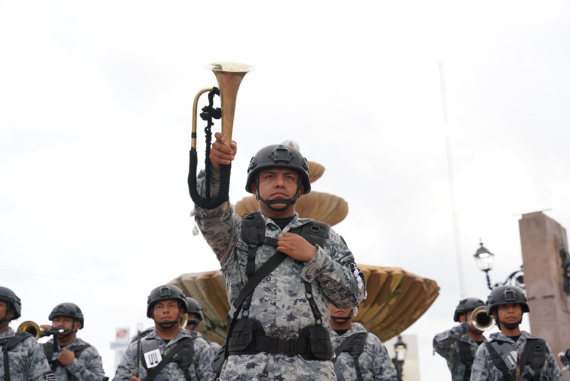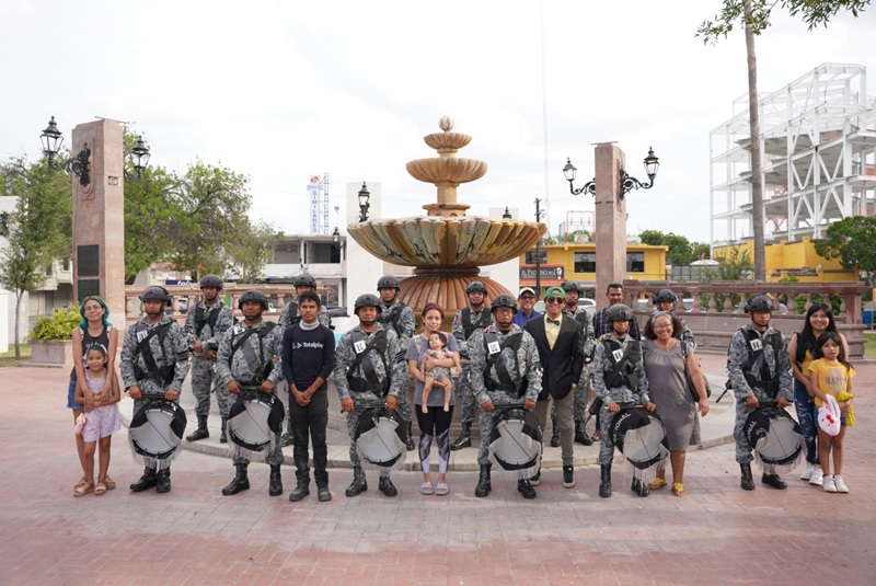 NUEVO LAREDO, TAMPS. La tarde del martes 15 de julio de 2025, la explanada de presidencia municipal fue escenario de una destacada exhibición por parte de la Banda de Guerra de la Coordinación Estatal “Tamaulipas” de la Guardia Nacional.