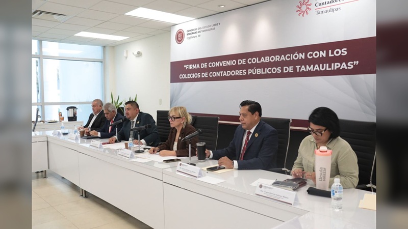 CIUDAD VICTORIA, TAMPS. Contadores públicos de Tamaulipas se integrarán al trabajo legislativo para revisar el gasto público y participar en la fiscalización de las cuentas del gobierno estatal y municipal, tras firmarse un convenio entre el Congreso del Estado y los Colegios de Contadores Públicos.