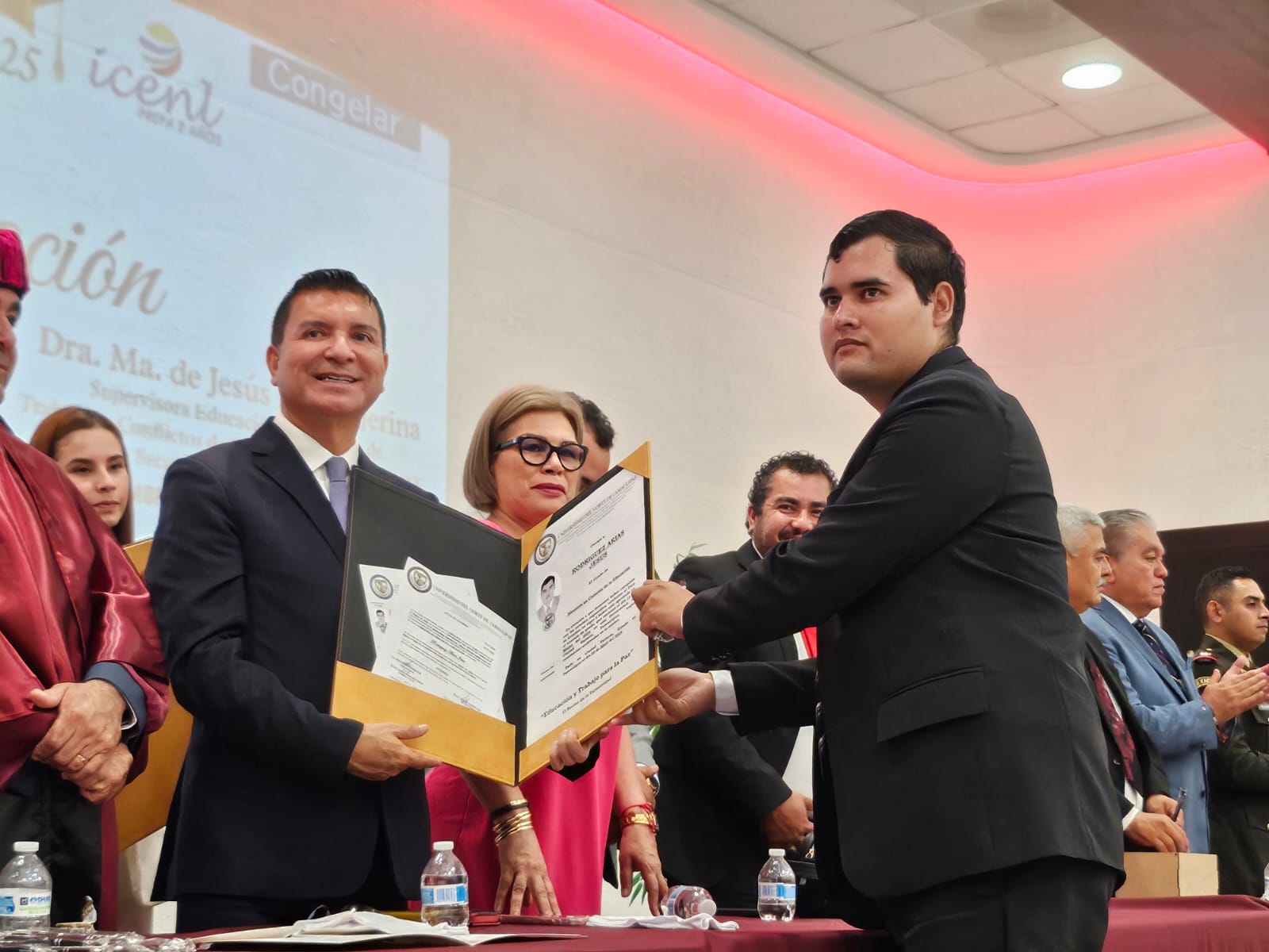 Para terminar, Francisco Chavira Martínez reconoció y agradeció a cada uno de los padrinos de esta generación de egresados: diputado guatemalteco Sergio David Arana Roca; al Director del CBTis 119, Humberto Salvador Meléndez  Porras; a la Dra. María de Jesús Lara Tijerina, Supervisora de Educación y Secretaria de Trabajos y Conflictos de Educación Física de la Sección 30 del SNTE; y a la Dra. Maricela Rodríguez