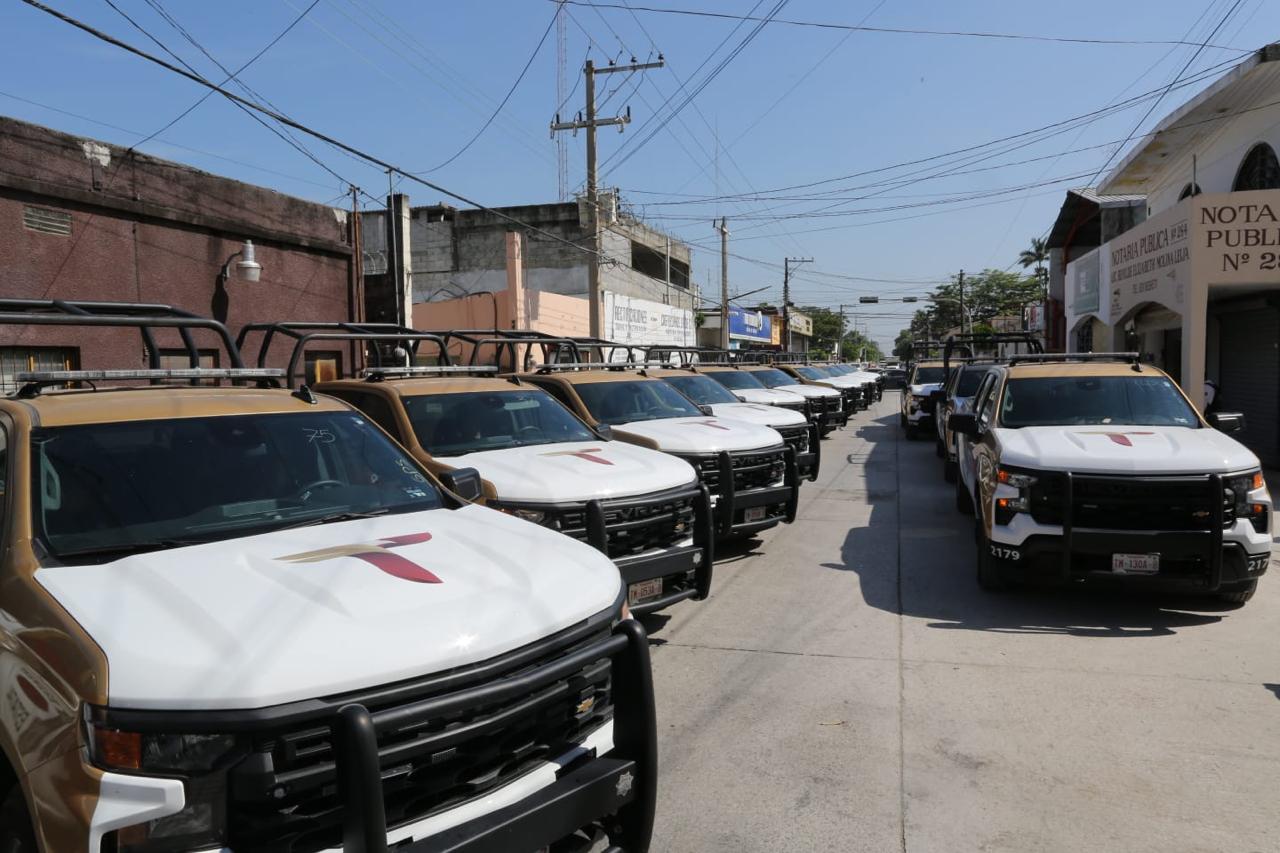 Tras encabezar la Mesa de Coordinación para la Construcción de Paz en la presidencia municipal de El Mante, donde participaron alcaldes y alcaldesas de Tampico, Ciudad Madero, Altamira, Aldama, Gómez Farías, Xicoténcatl, Llera y la anfitriona, de El Mante, Patricia Chío, representantes de las Mesas Ciudadanas, autoridades federales y militares, el mandatario estatal destacó que se evalúan los avances en materia de seguridad en la zona sur y la región cañera y como parte del reforzamiento se entregan estas unidades.