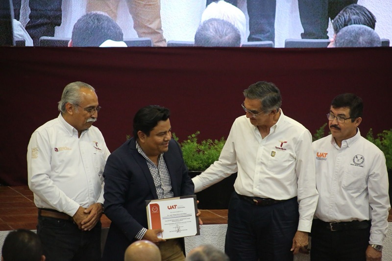 El gobernador entregó reconocimientos a los ponentes del foro: Armando García López, director de la Comisión México-Estados Unidos para la Prevención de la Fiebre Aftosa y otras Enfermedades Exóticas de los Animales (CPA) del SENASICA; Juan Diego Pérez de la Rosa, coordinador de la Dirección General de Salud Animal de SENASICA, y a Jorge Francisco Monroy López, epidemiólogo, investigador y académico de la FMVZ de la UNAM.