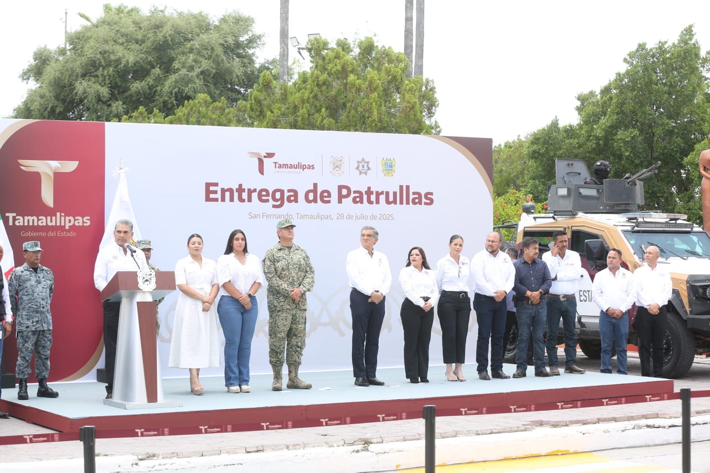 También acompañaron al gobernador: Héctor Joel Villegas González, secretario general de Gobierno; el general Luis Victoria Corte, comandante de la Guarnición Militar de Matamoros; el coronel de artillería José Silvestre Marín Peñaloza, en representación de la 48 Zona Militar, y el capitán primero Jorge Luis Rodríguez García, coordinador de la Guardia Nacional, región San Fernando, además de integrantes de la Mesa de Seguridad y funcionarios del Ayuntamiento de esta localidad.