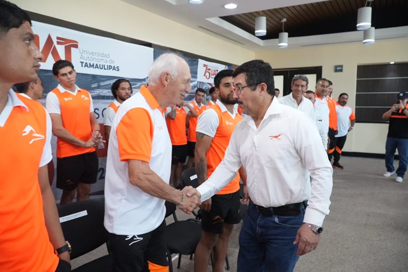 CIUDAD VICTORIA, TAMPS. Con el propósito de seguir consolidando el deporte universitario, el rector de la Universidad Autónoma de Tamaulipas (UAT), Dámaso Anaya Alvarado, encabezó la presentación oficial del equipo Correcaminos rumbo al Torneo Apertura 2025 de la Liga de Expansión.