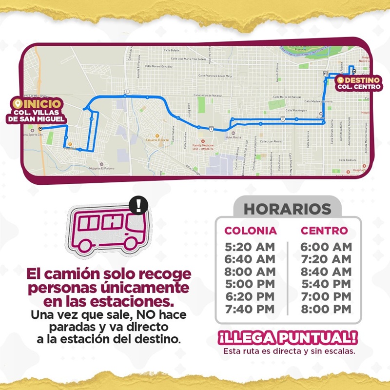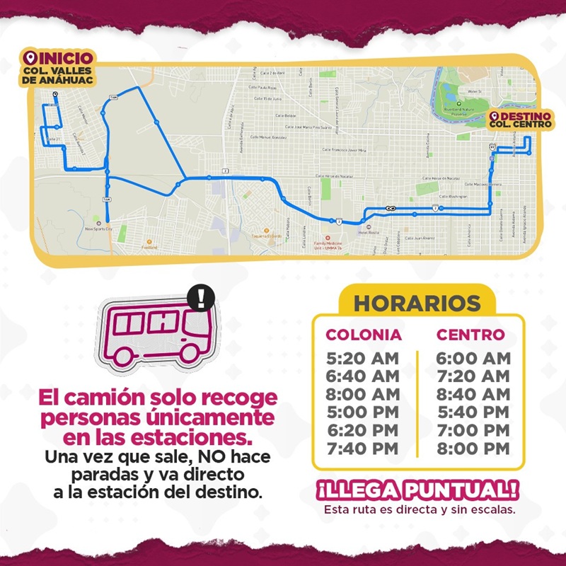 Las rutas exprés conectarán las colonias Valles de Anáhuac y Valles de San Miguel con el centro de la ciudad, sin paradas intermedias, permitiendo a las y los usuarios llegar más rápido a su destino.