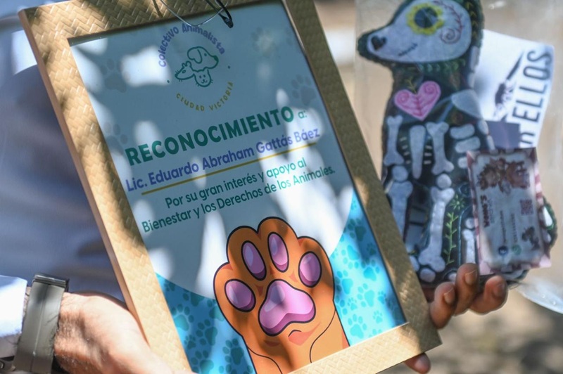CIUDAD VICTORIA, TAMPS. Por el gran interés y apoyo al bienestar y derechos de los animales, el Colectivo Animalista de Victoria entregó reconocimiento al gobierno municipal que preside el alcalde Eduardo Gattás Báez.