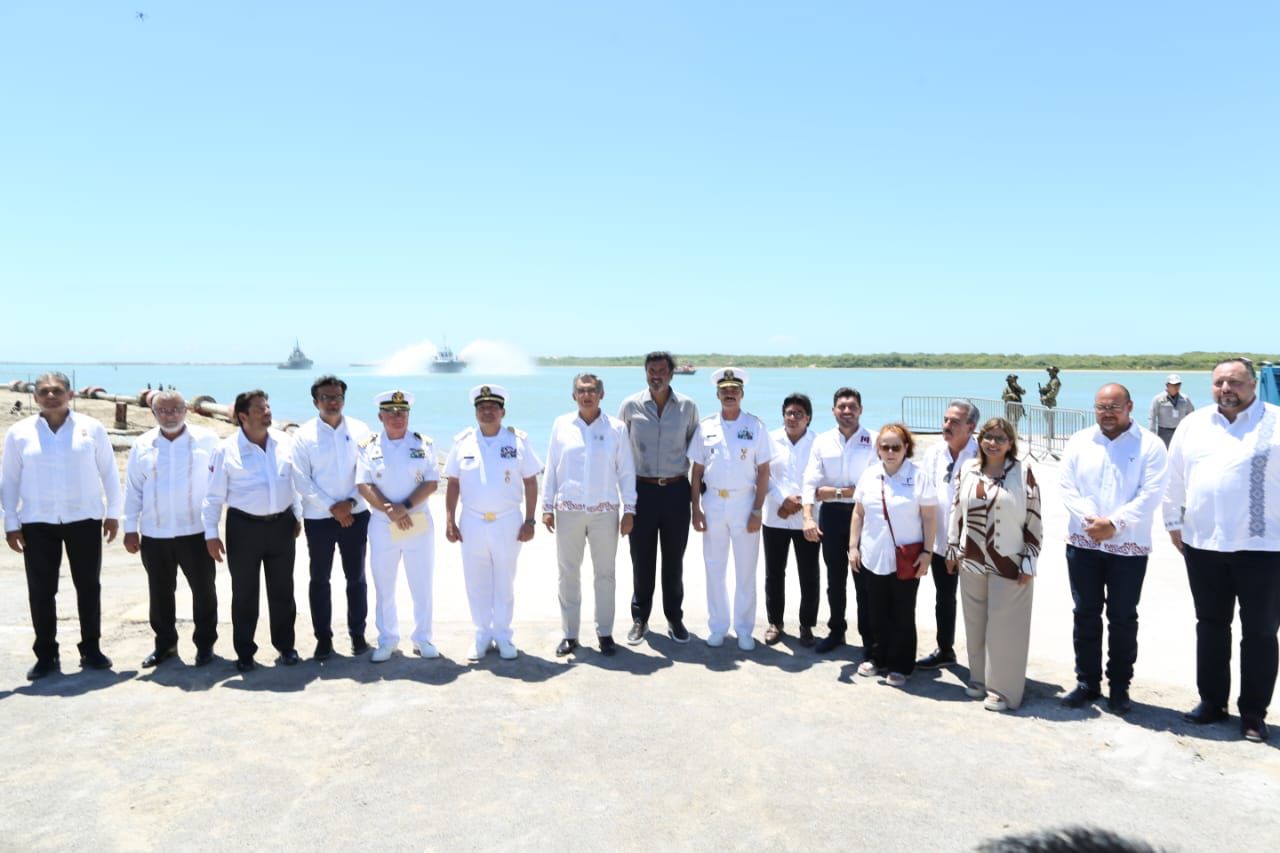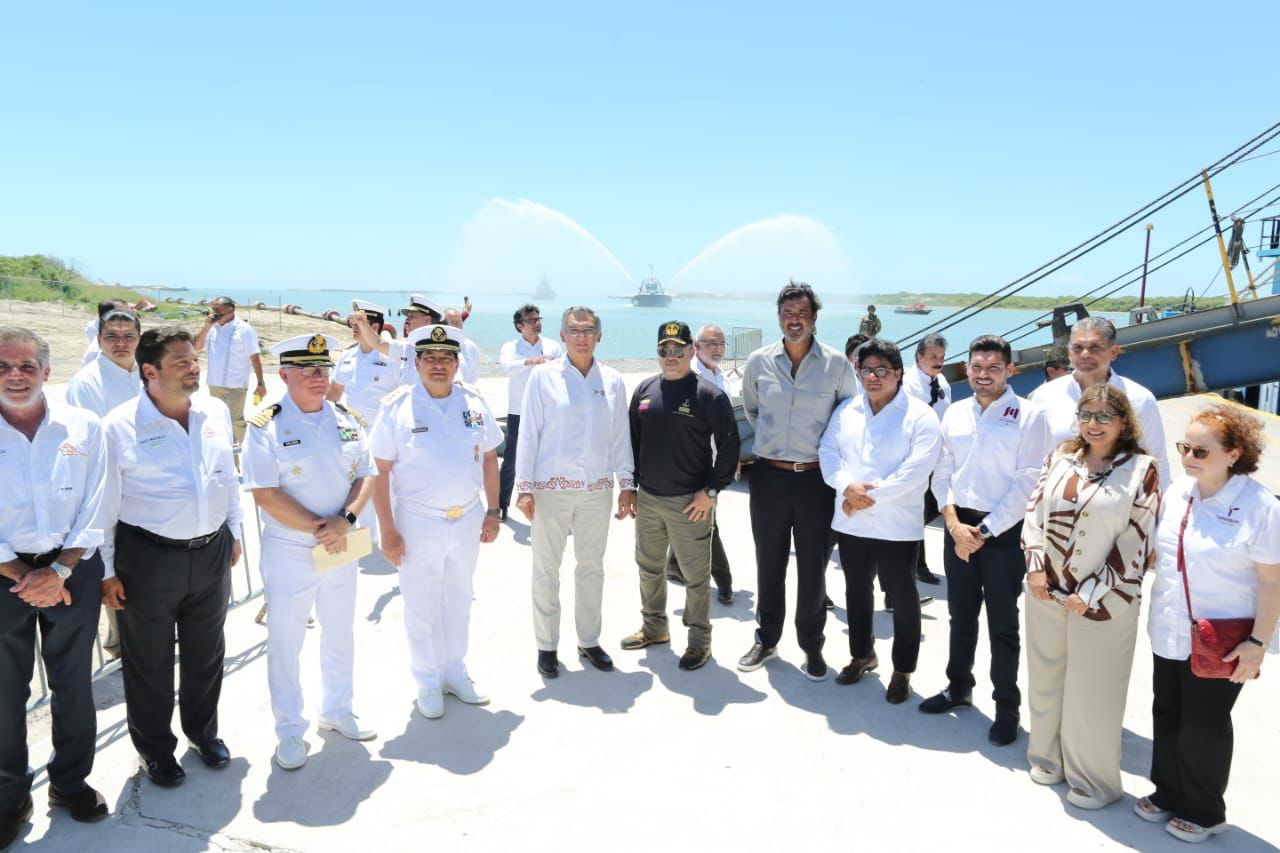 Acompañado por José Miguel Bejos, presidente del Consejo de Administración de Mota Engil México, y Javier García Bejos, director de Proyectos Especiales Latinoamérica de Mota Engil, Villarreal Anaya destacó el apoyo de la presidenta Claudia Sheinbaum y del secretario de Marina, Raymundo Pedro Morales Ángeles, así como de las empresas que confiaron en que este proyecto se podía hacer realidad.