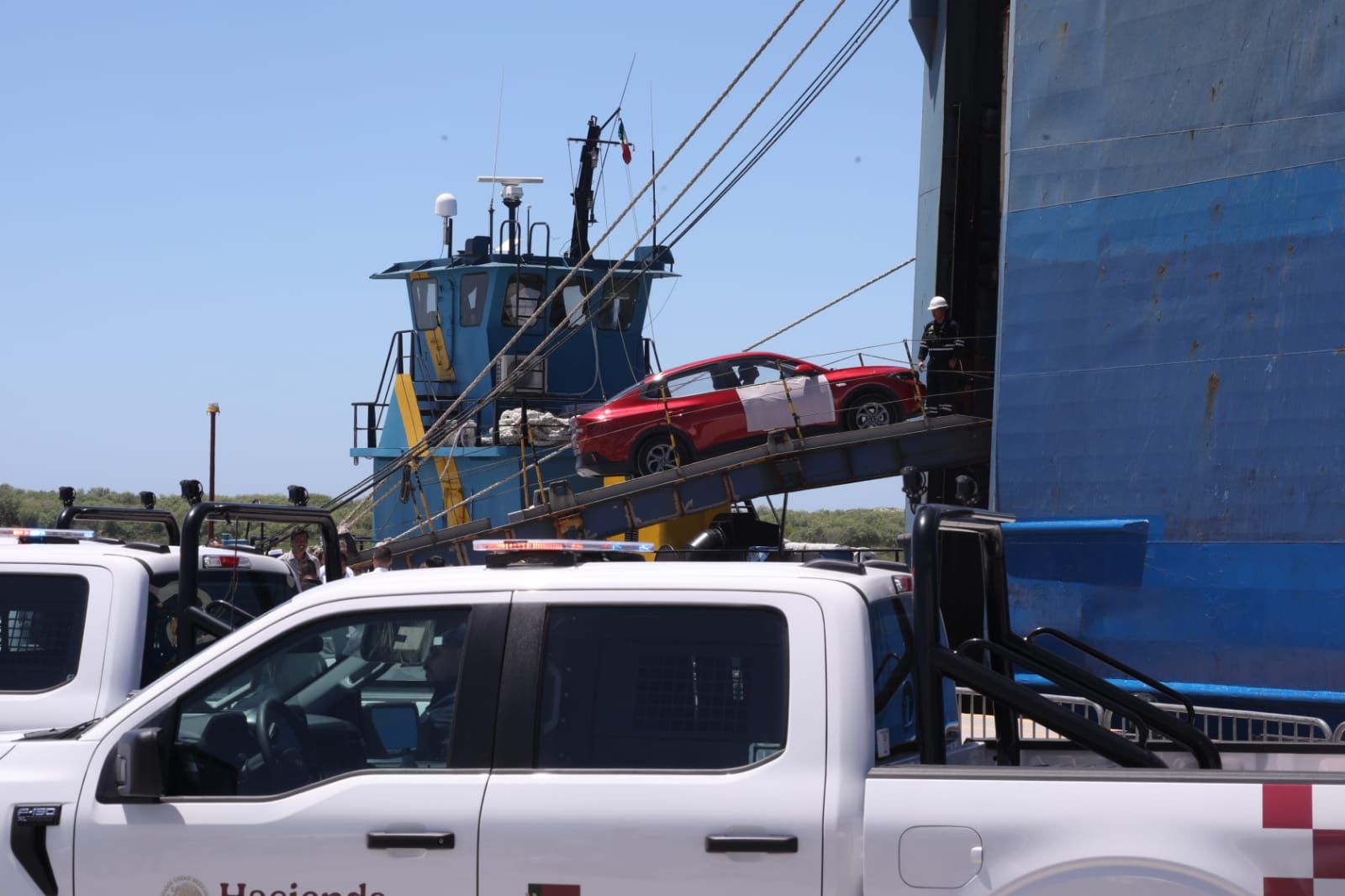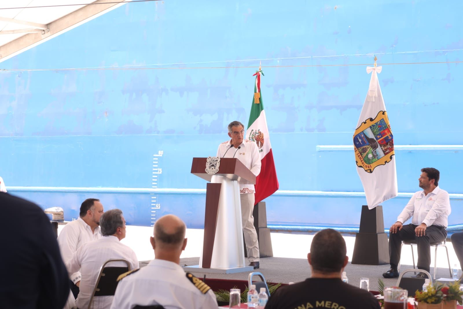 Luego de dar el banderazo al embarque de los primeros vehículos que ingresaron al buque «Integrador», anclado en el muelle del puerto, y tras recibir el título de concesión que autoriza iniciar operaciones portuarias, de manos del almirante José Barradas Cobos, subsecretario de Marina Mercante, el gobernador aseguró que, a partir de este día, Tamaulipas se convierte en la nueva frontera marítima de México.