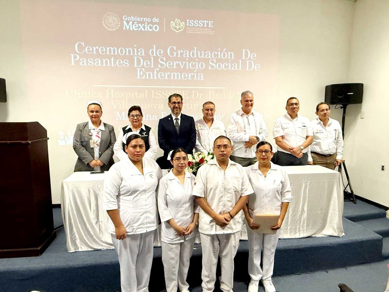 El evento fue encabezado por el subdelegado médico del ISSSTE en Tamaulipas, Jorge Iván Alejandro Cortina Beltrán, quien reconoció el esfuerzo, vocación y compromiso de los graduados: Sara Alejandra Mazaba Sánchez, Lorenzo Antonio Rodríguez Olivares, Maricela Dionisio Jiménez y Tania Natalie Hernández Alcocer.