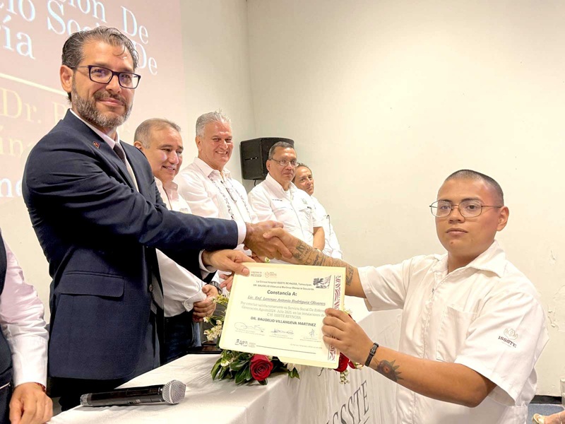 • En instalaciones remodeladas, el subdelegado médico del ISSSTE en Tamaulipas reconoció el esfuerzo, vocación y compromiso de los graduados.