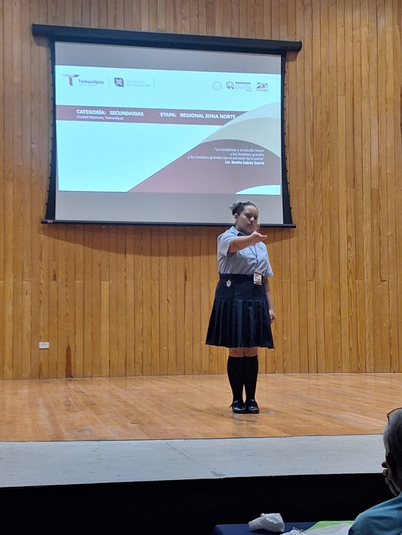 Compartió que su historia en la oratoria comenzó en 2024, al obtener el segundo lugar en la categoría Secundaria del LIV Concurso Estatal “Sentimiento Juarista” 2024, entre más de 14 mil 500 estudiantes de educación básica de todo Tamaulipas.