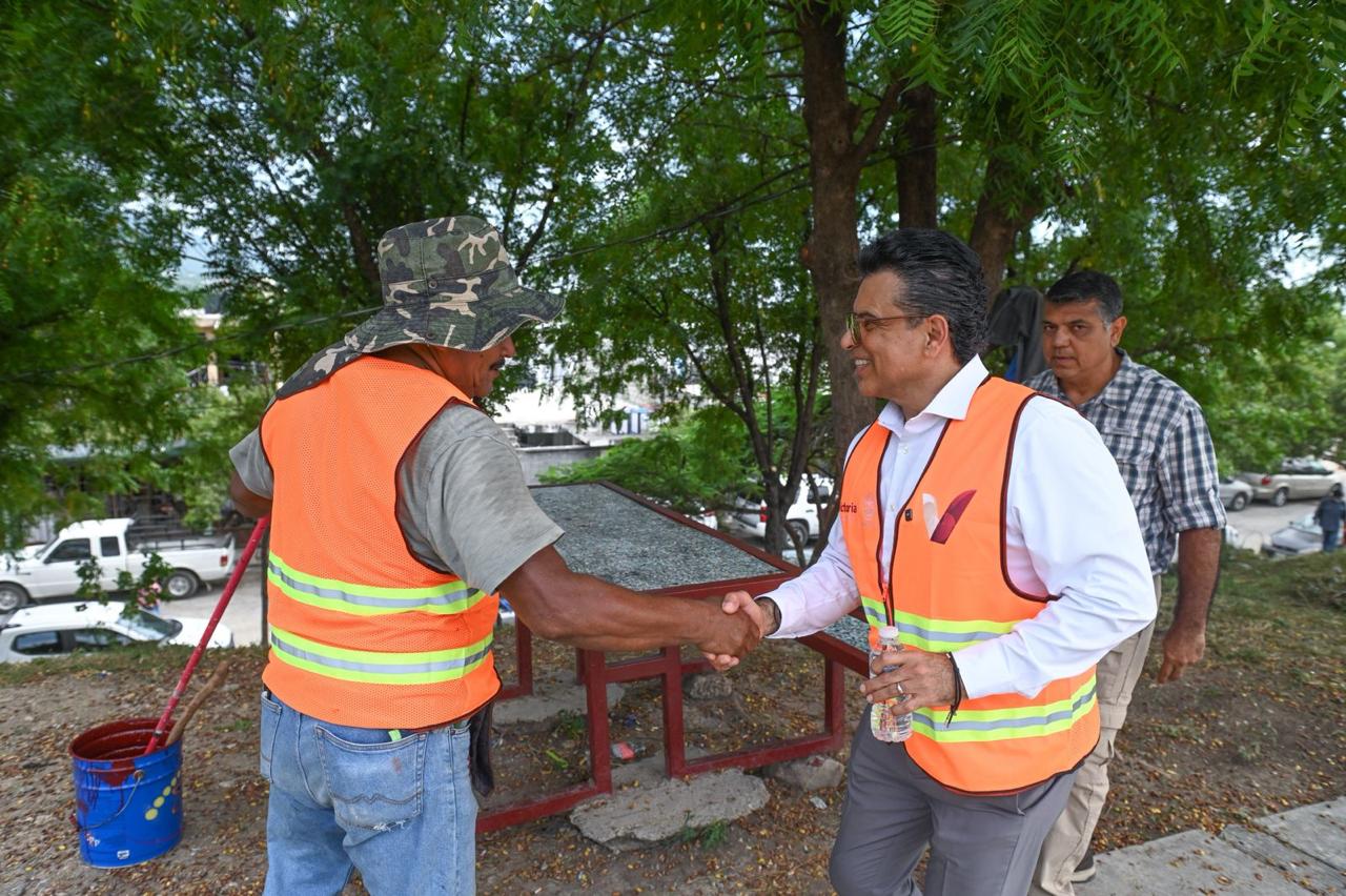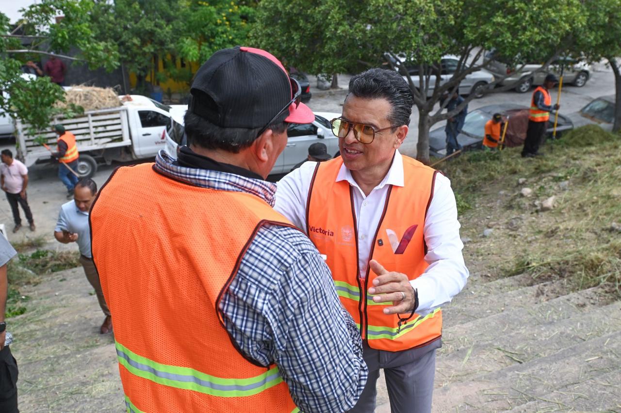 CIUDAD VICTORIA, TAMPS. Para fortalecer la convivencia familiar y vecinal, el presidente municipal de Victoria Eduardo Gattás Báez visitó este día, con personal de Servicios Públicos del Municipio, la Colonia Lomas de Santander para rescatar el área verde que por años permaneció en el abandono.