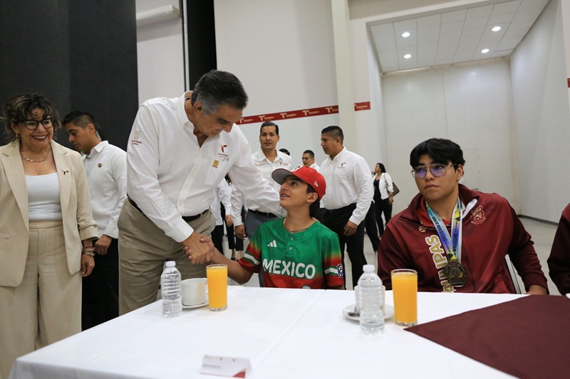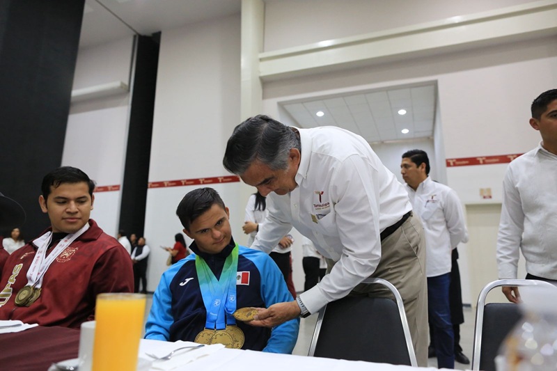 “Es un ejemplo y orgullo para Tamaulipas”, afirmó el gobernador ante el aplauso de pie que le brindaron al joven atleta, presente en la ceremonia.