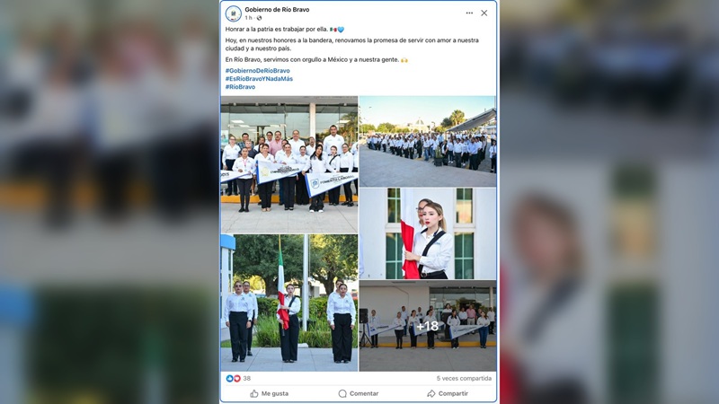 RÍO BRAVO, TAMPS. La ceremonia de honores a la bandera cada lunes es más que un simple acto protocolario; es un símbolo de respeto y compromiso con nuestra nación. Cuando el propio Gobierno de Río Bravo nos recuerda que “Honrar a la patria es trabajar por ella”, la ausencia de su máxima autoridad en estos eventos, el alcalde Miguel Ángel Almaraz, no pasa desapercibida.