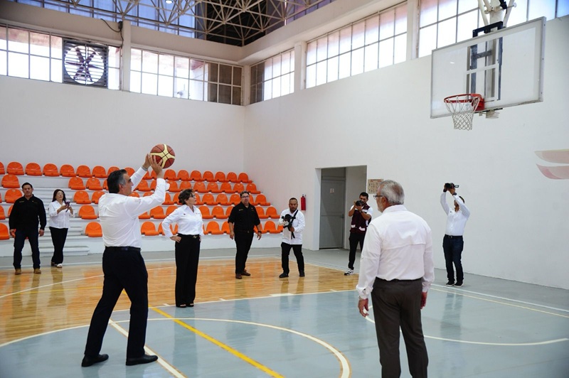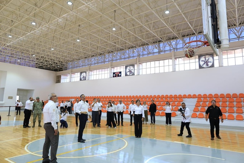 Al término de la ceremonia de honores, el gobernador ingresó al gimnasio Manuel Raga, en donde convivió con integrantes del equipo de cachibol Águilas de Fuego y con el equipo de basquetbol Panteras.