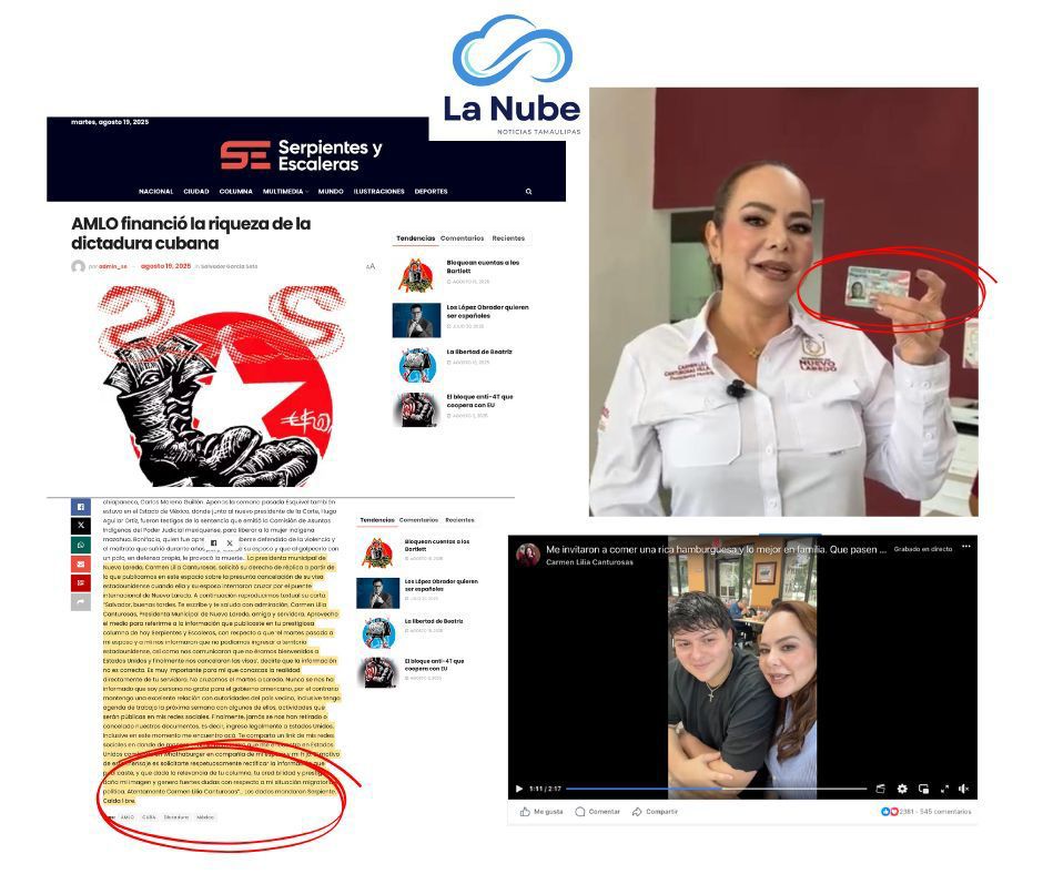 La presidenta municipal de Nuevo Laredo, Carmen Lilia Canturosas, ejerció su derecho de réplica para desmentir una publicación del columnista Salvador García Soto, quien en su espacio «Serpientes y Escaleras» del diario El Universal afirmó que la alcaldesa y su esposo habían sido expulsados de Estados Unidos y que se les había cancelado su visa.