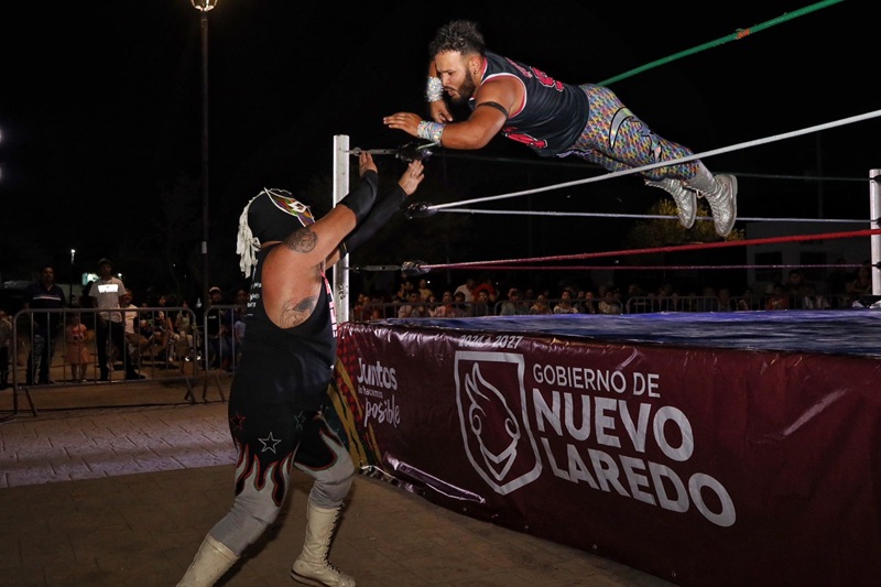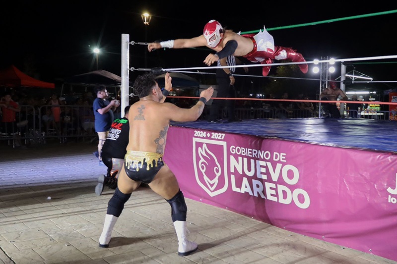 NUEVO LAREDO, TAMPS. Con gran entusiasmo y ante la presencia de más de 500 espectadores, el Instituto Municipal para el Desarrollo de la Juventud (IMJUVE) llevó a cabo la tercera edición de IMJUVEMANÍA, un espectáculo gratuito de lucha libre que se realizó en la Plaza de la Av. Iglesias Calderón, en la colonia Francisco Villa.