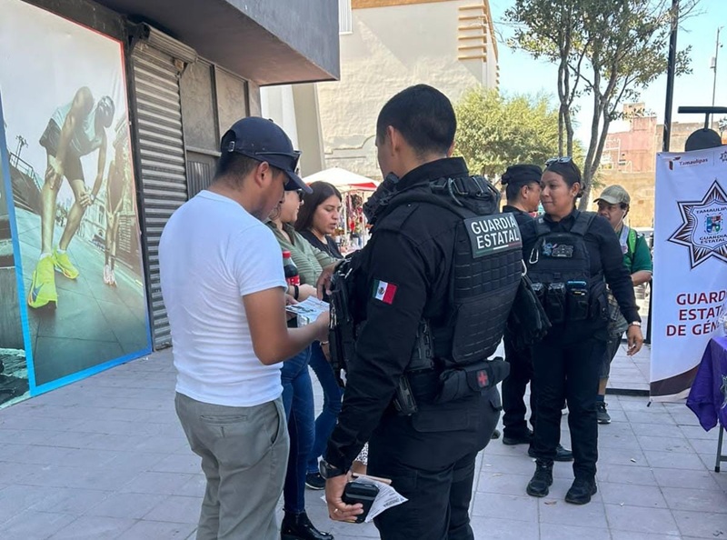 En el primer cuadro de la ciudad, personal de la Delegación Estatal de Atención a la Violencia Familiar y de Género de la Secretaría de Seguridad Pública de Tamaulipas (SSPT) entregó trípticos informativos y dialogó de cerca con transeúntes de diversas edades.