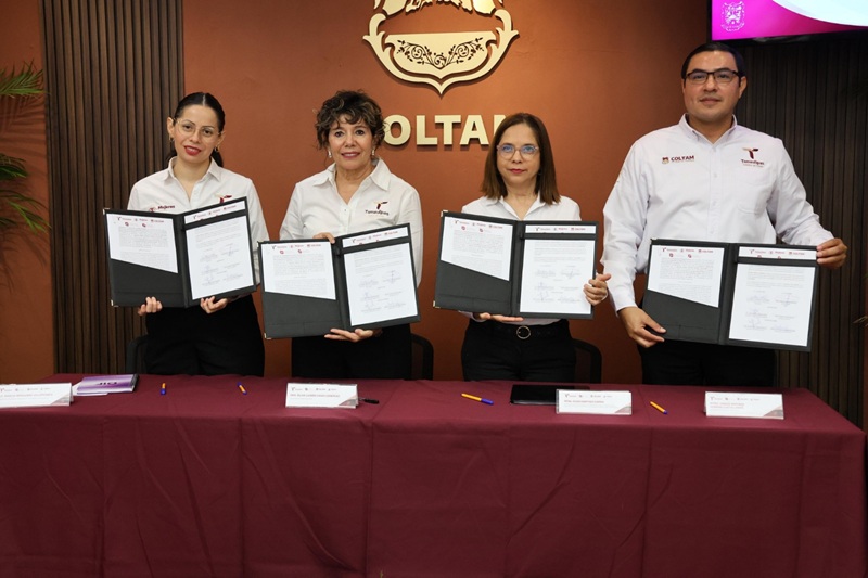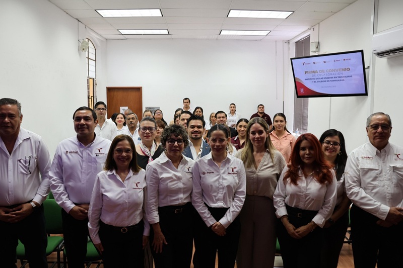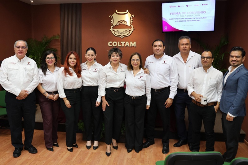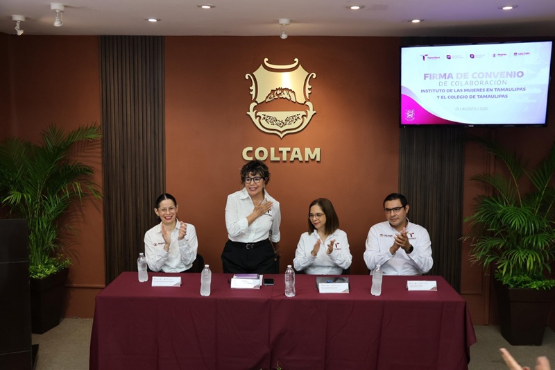 CIUDAD VICTORIA, TAMPS. Con el objetivo de fortalecer el desarrollo de formación continua y la investigación en materia de género y generar información que contribuya a la elaboración de políticas públicas más efectivas, el Instituto de las Mujeres en Tamaulipas (IMT) y el Colegio de Tamaulipas (COLTAM) firmaron un convenio de colaboración interinstitucional en las instalaciones del Colegio de Tamaulipas, evento que contó con la presencia de autoridades, entre ellas Silvia Casas, secretaria de Bienestar Social y Sylvia Isabel Martínez, subsecretaria de Planeación de la Secretaría de Educación.
