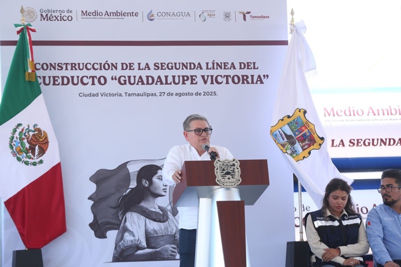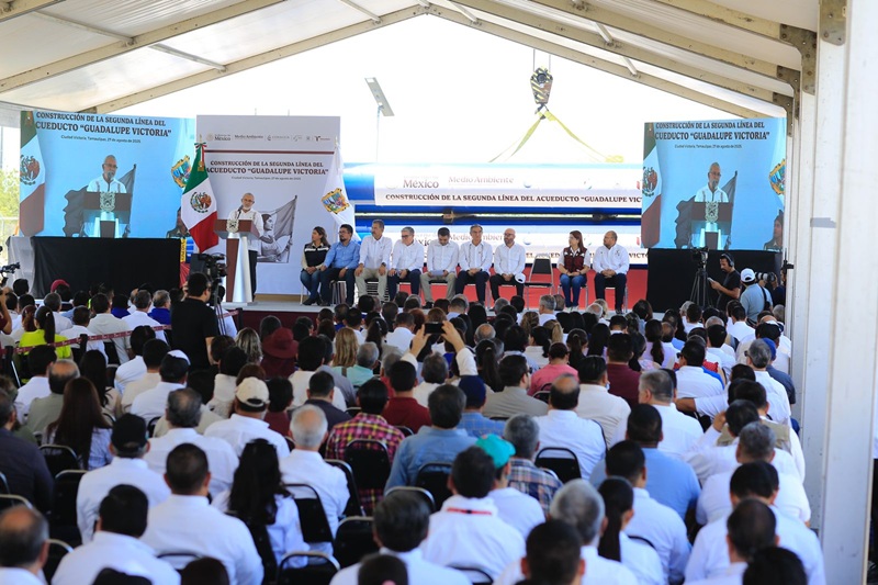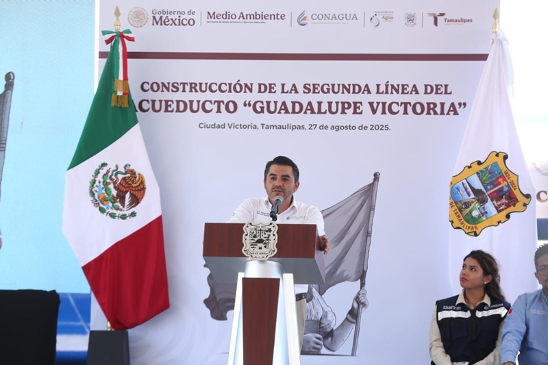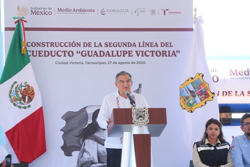 “Este día estamos frente a una obra que tiene memoria y futuro, ya que hace 38 años el ingeniero Américo Villarreal Guerra inició la construcción de la primera línea del acueducto, que por décadas nutrió de agua a nuestra capital. Hoy, su hijo retoma ese legado y lo proyecta hacia el futuro, consolidando una segunda línea que asegurará el suministro del vital líquido para las generaciones presentes y futuras de Ciudad Victoria”, mencionó.