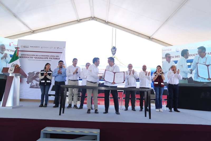 En un evento histórico, en la Planta de Rebombeo No. 1, el gobernador y el director de la Conagua firmaron también el convenio de colaboración para la ejecución de la segunda línea del acueducto de la presa Vicente Guerrero a Ciudad Victoria, el cual comprende 54.7 kilómetros para disposición y saneamiento del agua para consumo personal y doméstico a la ciudadanía.