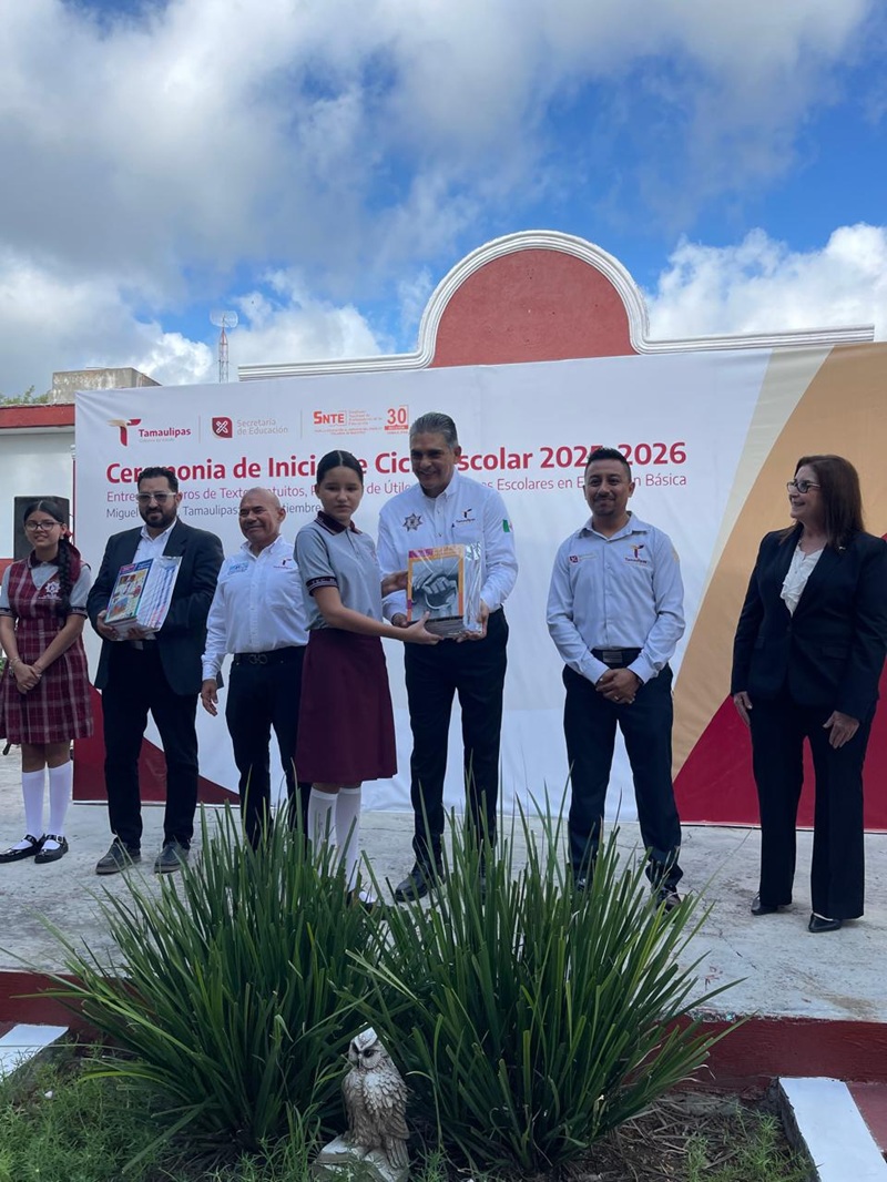 En este espacio, acompañado del alcalde Ramiro Cortez Barrera, refrendó el compromiso del Gobierno del Estado y el Gobierno de México que encabeza la doctora Claudia Sheinbaum Pardo para impulsar una educación humanista y con un sentido de justicia social para cada estudiante de Tamaulipas.