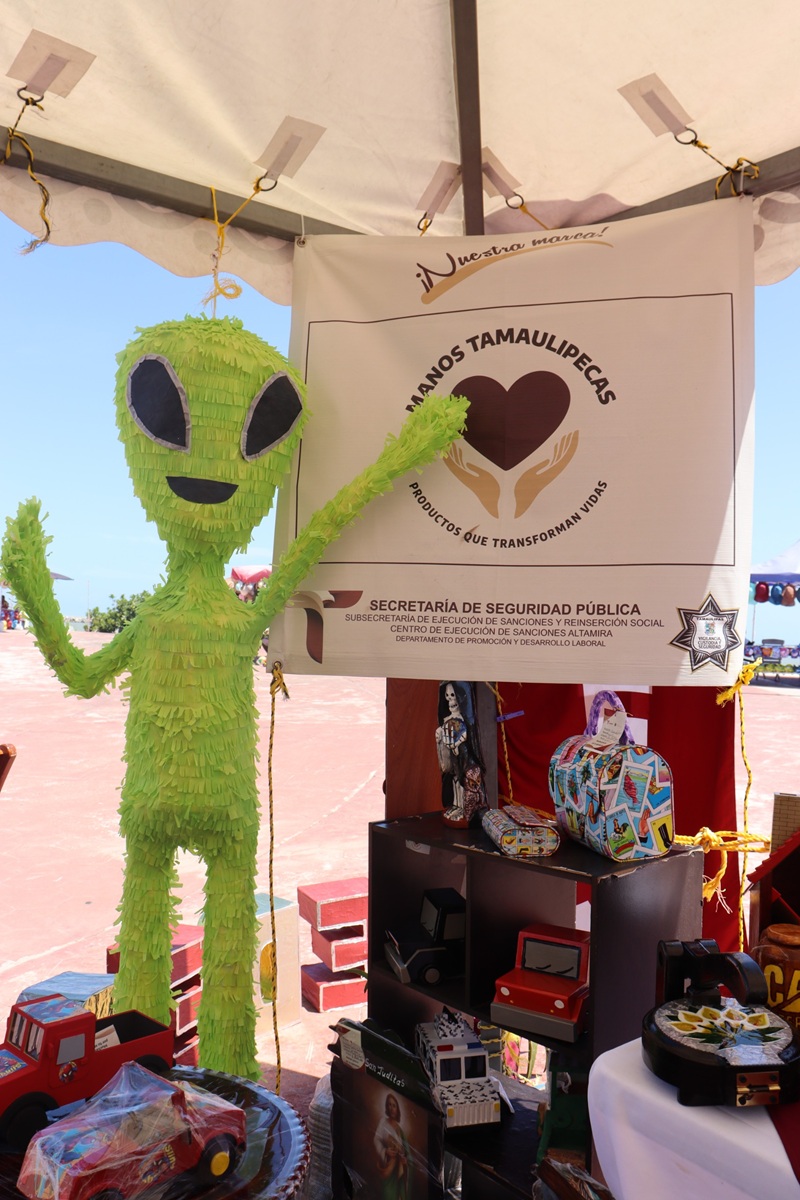 CIUDAD MADERO, TAMPS. Tras varias semanas de exposición y venta de artesanías elaboradas por personas privadas de la libertad (PPLs) del Centro de Ejecución de Sanciones (CEDES) del municipio de Altamira, el módulo ‘OVNI-CEDES’ fue retirado de la Playa Miramar superando la expectativa de ventas proyectadas.