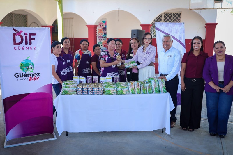 GÜÉMEZ, TAMPS. El Sistema para el Desarrollo Integral de la Familia de Tamaulipas que preside la doctora María de Villarreal, realizó la entrega simbólica de insumos alimentarios que enmarcaron el arranque del programa ‘Desayunos Escolares’ para el ciclo escolar 2025-2026.